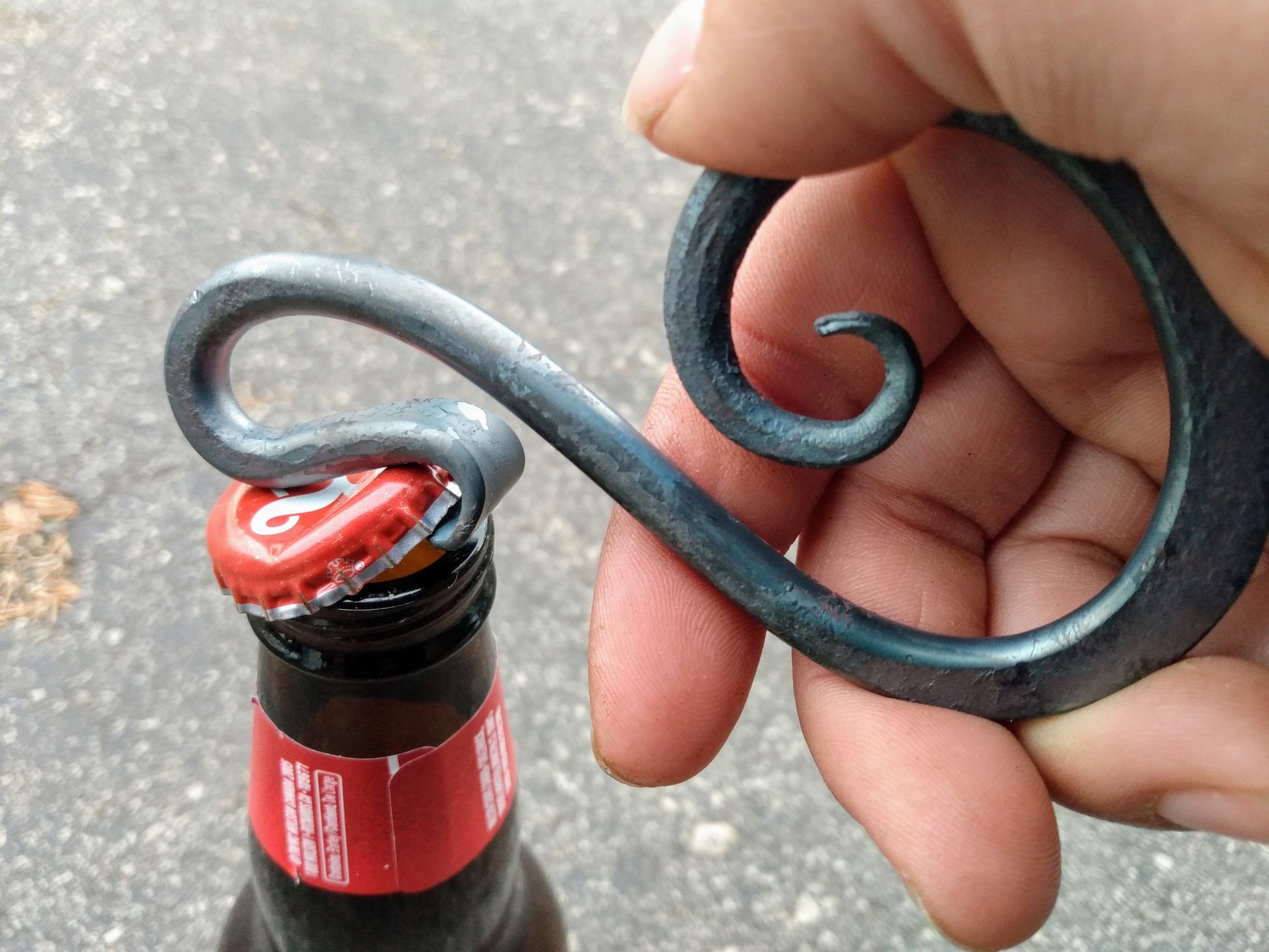 Cheers! This whimsical steel bottle opener is hand-forged in fire and makes a wonderful gift! Each bottle opener is handcrafted one at a time, a labour of love that pairs well with craft beer!