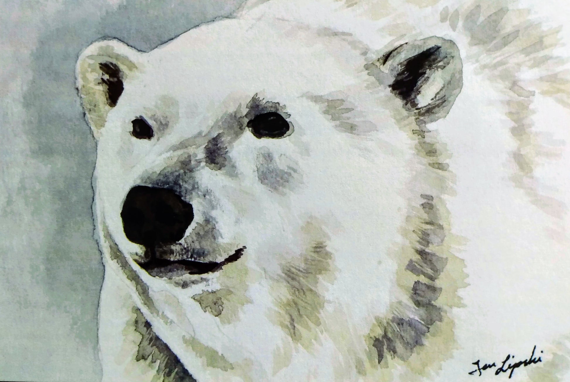Polar Bear Study (Watercolour and Ink)