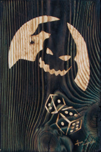 This unique painting is burned and carved into wood, inspired by Oogie Boogie from The Nightmare Before Christmas. Also check out our Jack Skellington, Sally, and Zero (coming soon) wood artworks!