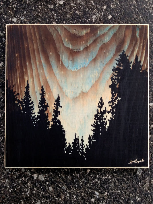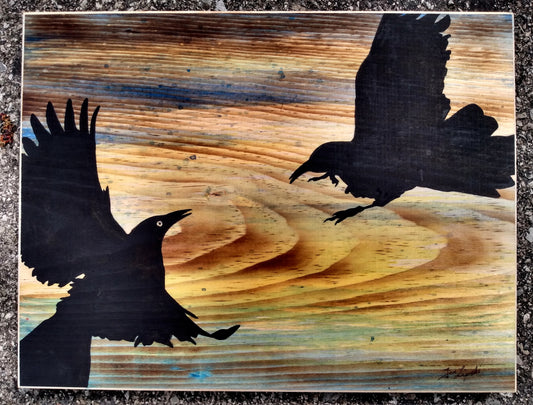 These original artworks combine vibrant colors with the natural beauty of rustic wood through a unique combination of burning, staining, and painting. Have one custom made just for you by choosing your design and requesting your own background colours. Choose from the designs below, or contact us to have one made from your own photographs.