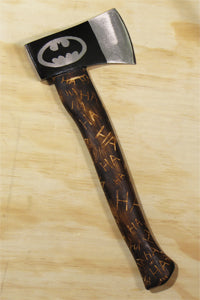 Batman meets the Joker in this unique carved hatchet, featuring the Bat symbol on the axe head and the Joker's signature laugh ornamenting the handle. Each axe design is hand carved by artist Jen Lipski and made to order.