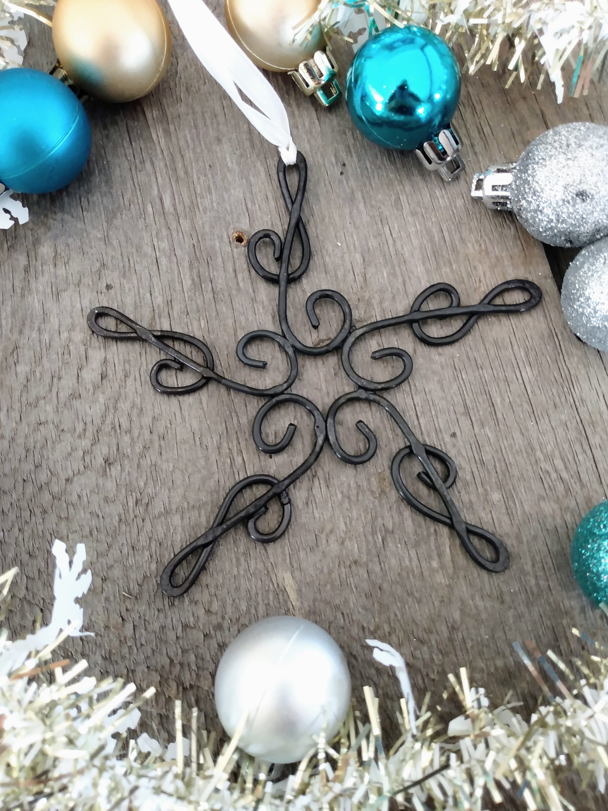 Enhance your decor this season with a unique blacksmith-made ornament for your Christmas tree! This lovely snowflake ornament makes a wonderful addition to your festive decor, or give it as a unique teacher gift, hostess gift or Secret Santa!!!