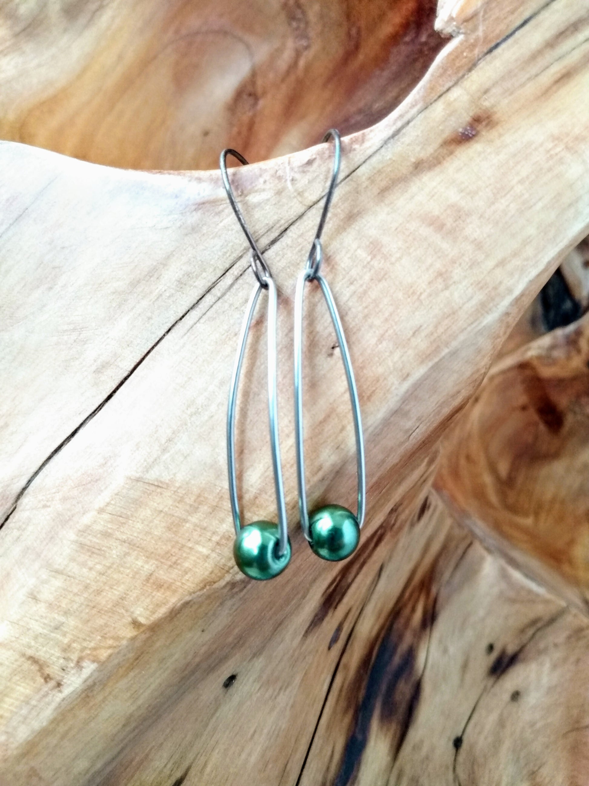 Simple yet elegant, these everyday pearl earrings are handcrafted from stainless steel and accented with your choice of coloured glass pearl.