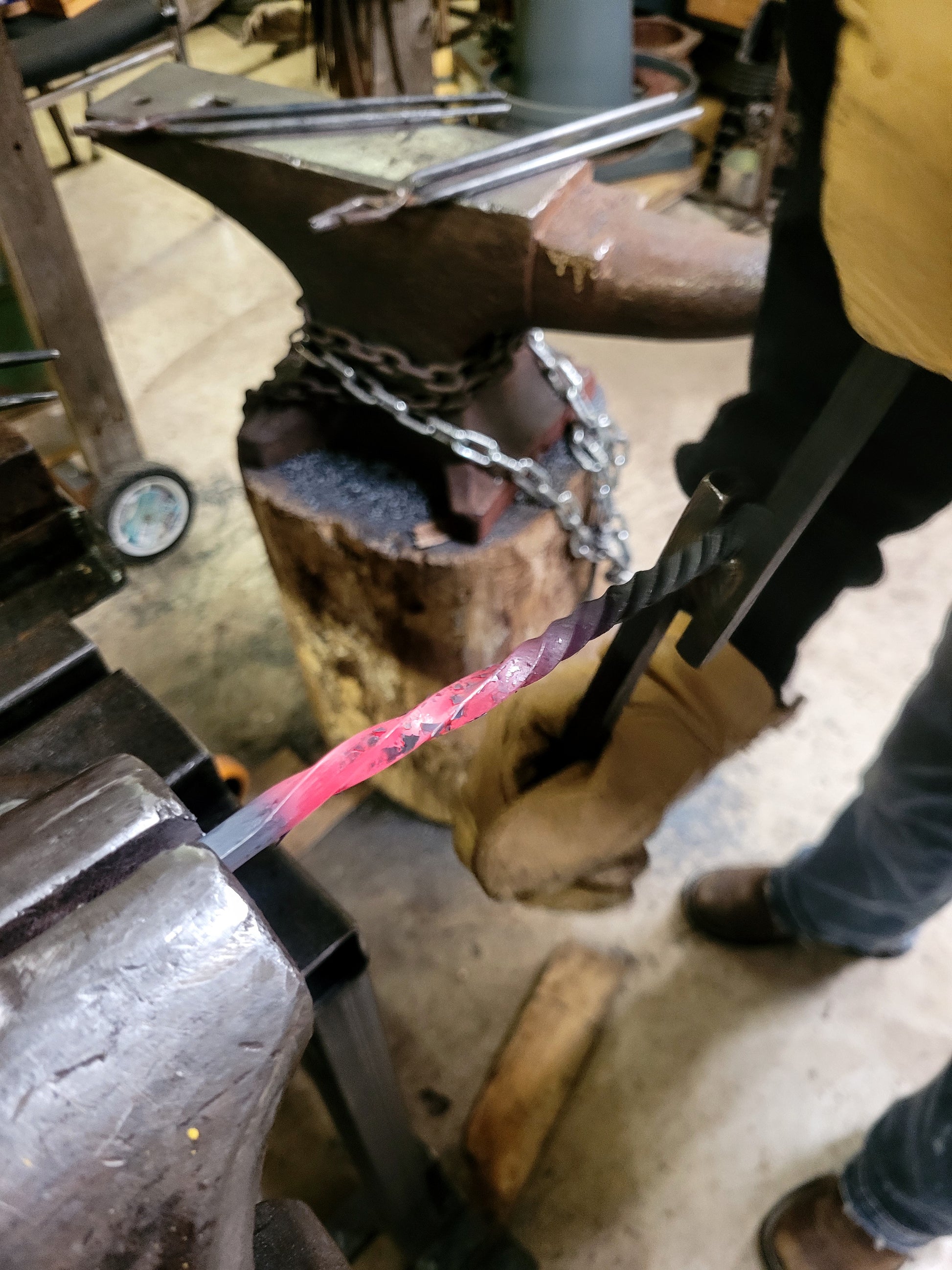 Come out to the forge and craft your own unique Christmas Ornament! Working hands on with artist Jen Lipski, you will get your metal red hot and learn how to twist and bend it into your own iron Candy Cane using traditional blacksmithing techniques. No experience required. This Workshop will last approximately 1-2 hours. This simple workshop is perfect for those who would like to try blacksmithing but aren't sure if they are ready for bigger tasks. (No heavy hammering is required)