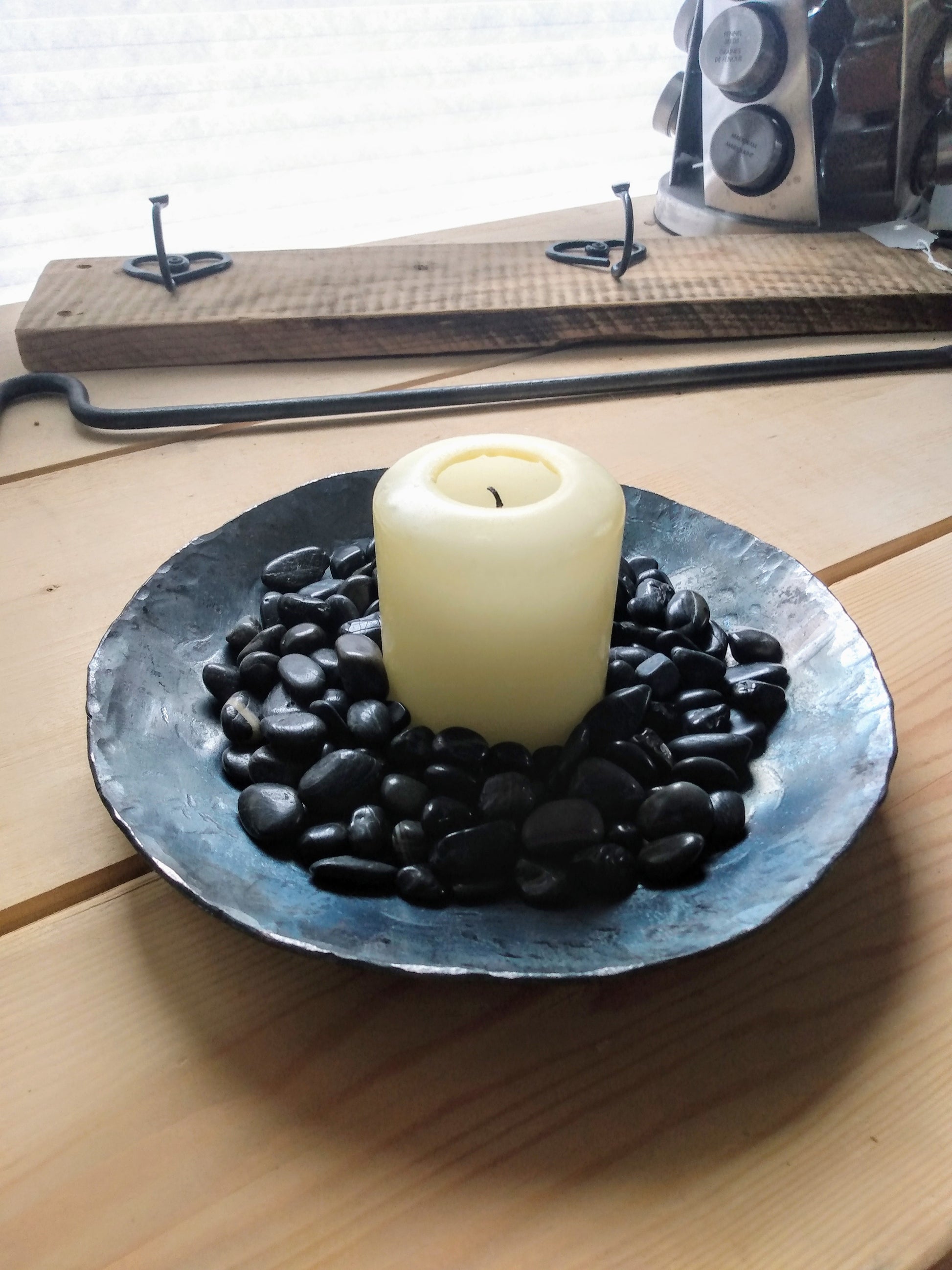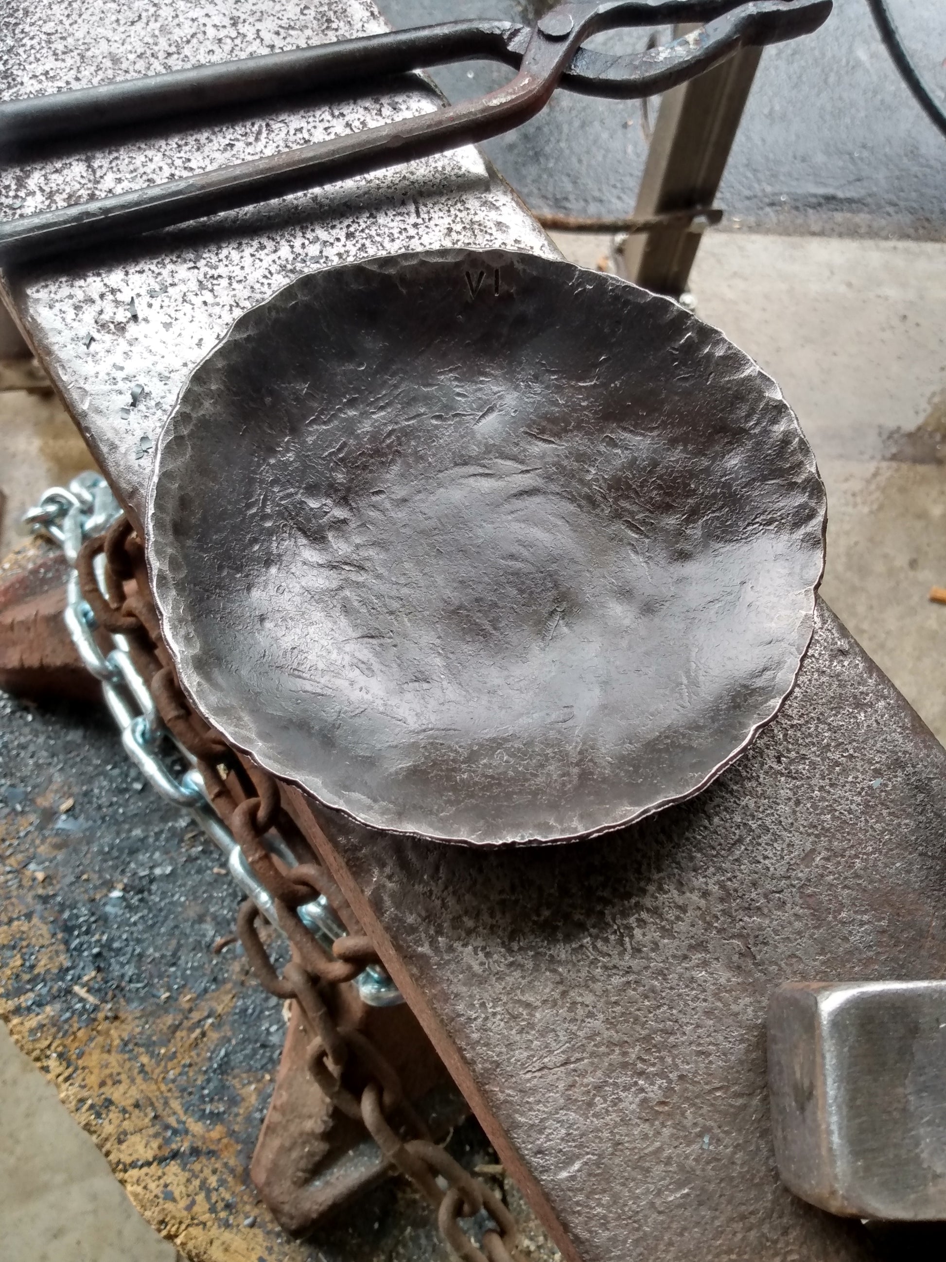 This textured iron bowl is forged completely by hand at the anvil and features heavy hammer marks for a stylish rustic appearance with an artistic flair. Each blow of the hammer leaves a distinct impression as it pounds and shapes the steel, so no two of these dishes will ever be identical!