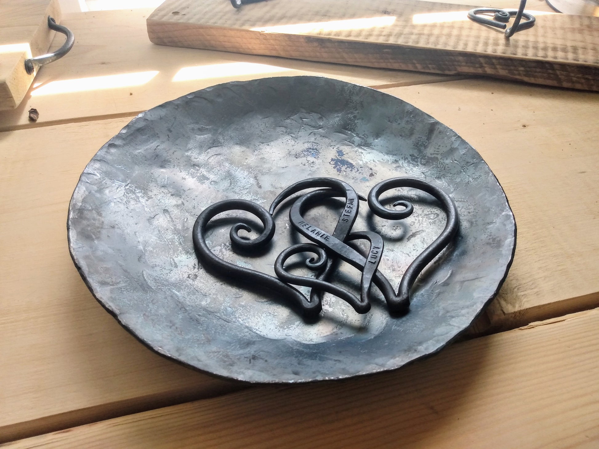 This unique and functional iron dish is the perfect gift for a special anniversary, wedding, or engagement, or simply use it as a beautiful addition to your decor! This heirloom quality piece will last for generations to come!