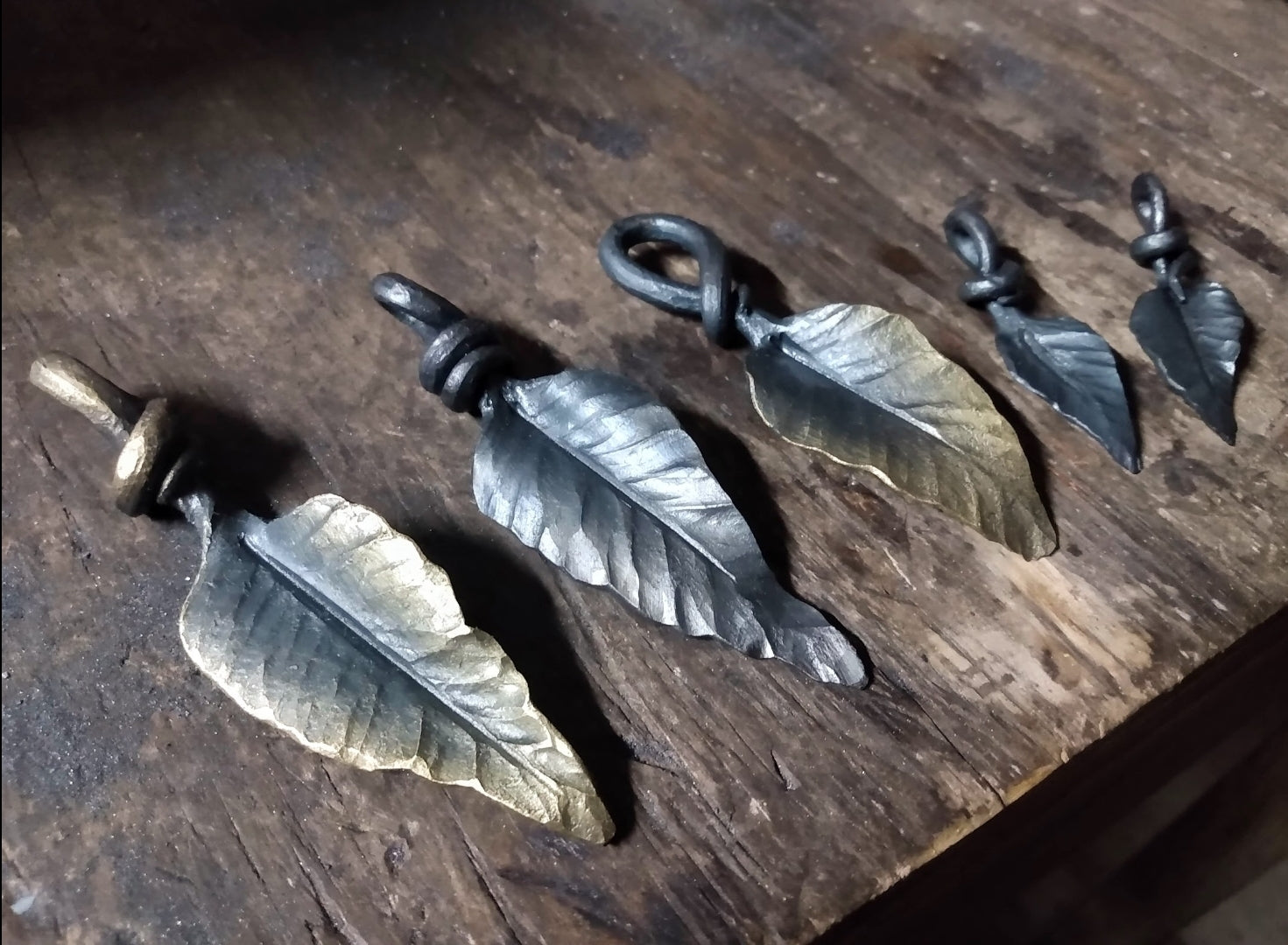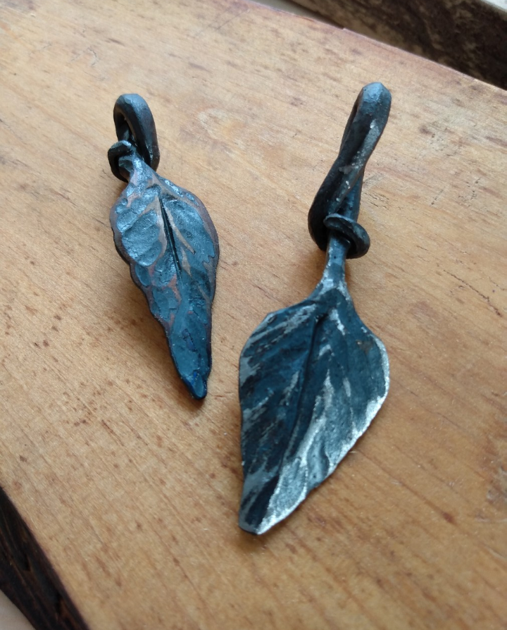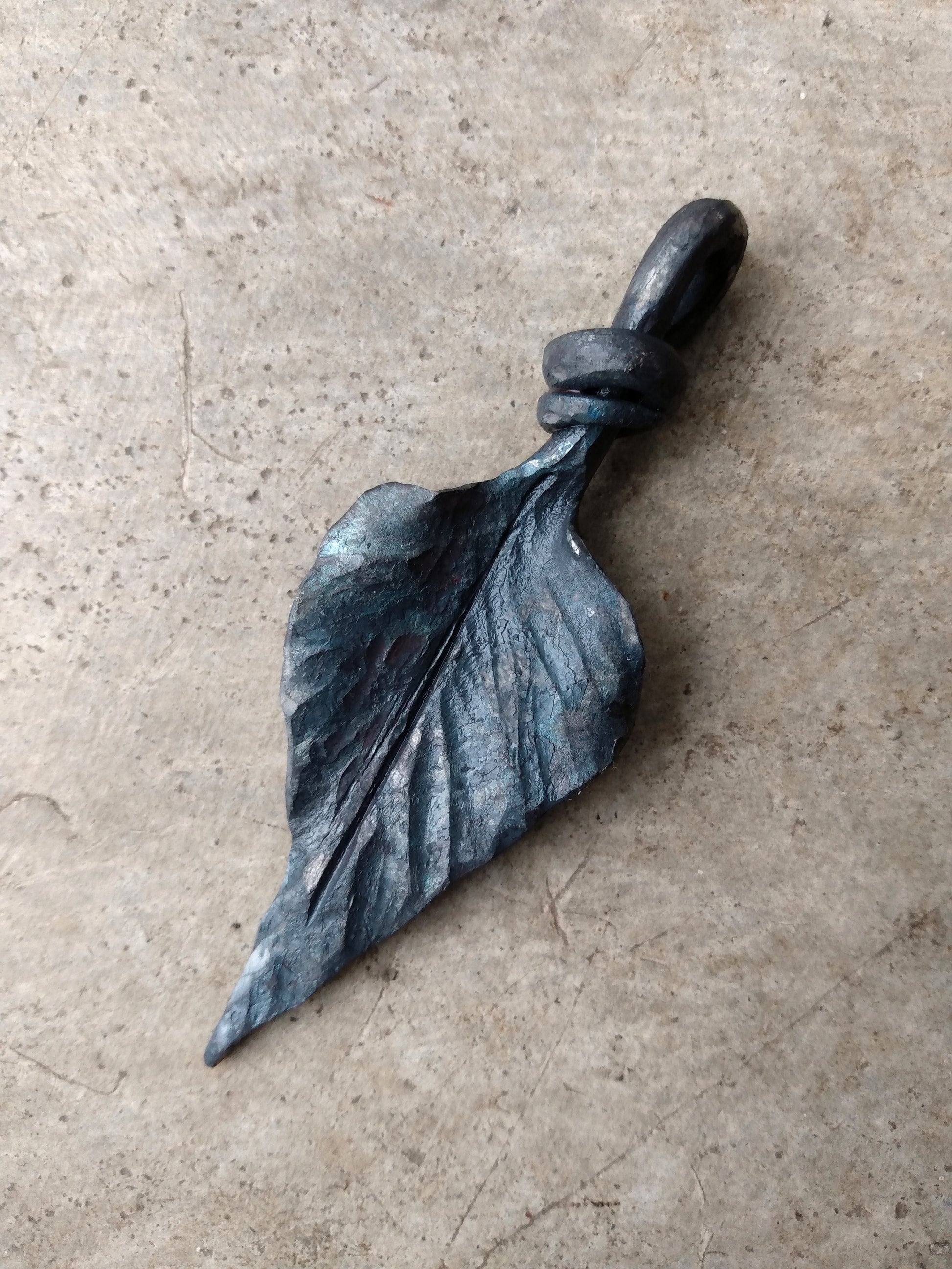 This hand-forged leaf pendant is sure to make a statement! Each leaf is crafted from a single piece of steel, which is heated up and hammered out by hand into a unique work of art. Wear it as a necklace or use it as a keychain! (Necklace cord or key ring included) This unique pendant is unlike any other!