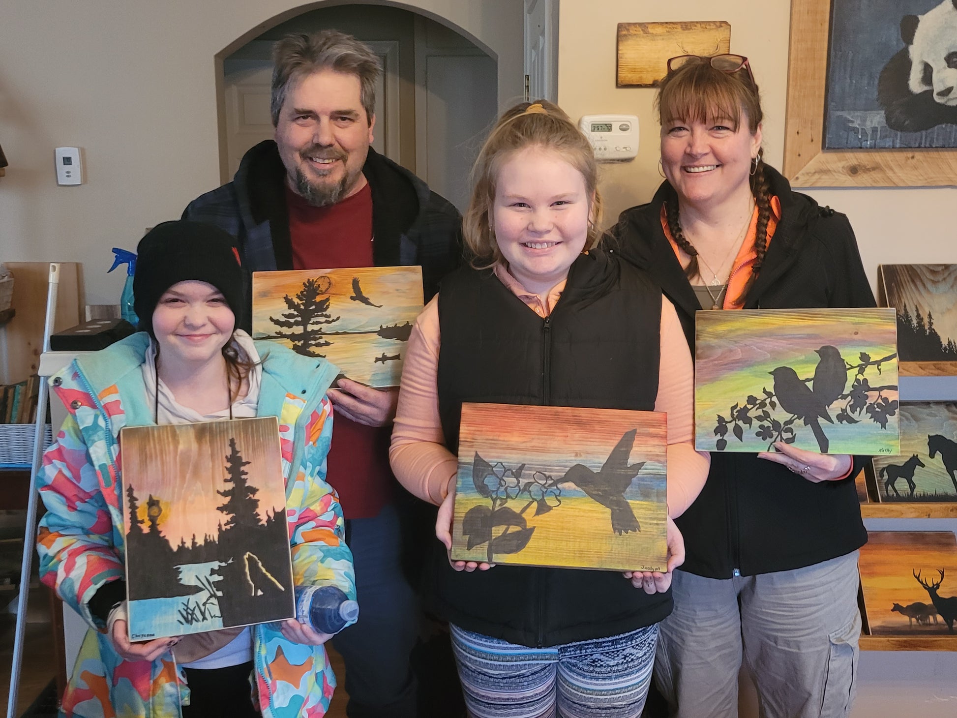 Explore your creative side with this fun and relaxing painting class! Learn how to create your own beautiful landscape painting on natural wood with artist Jen Lipski in her signature silhouette style! In this fun and simple painting class you will learn how to burn, stain, and paint on wood while creating your own personalized artwork to take home. Choose from a variety of wilderness themes or create your own design, so everyone's painting will turn out differently! (Stencils are available, so no drawing skills are required) This workshop is suitable for all skill levels and artistic abilities!