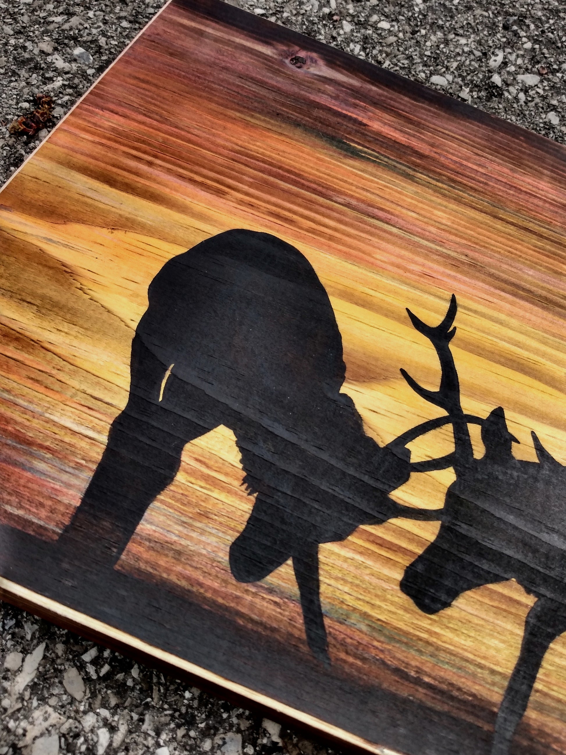 Capture the essence of the wilderness when you decorate your home or cottage with this unique silhouette, painted on natural wood.