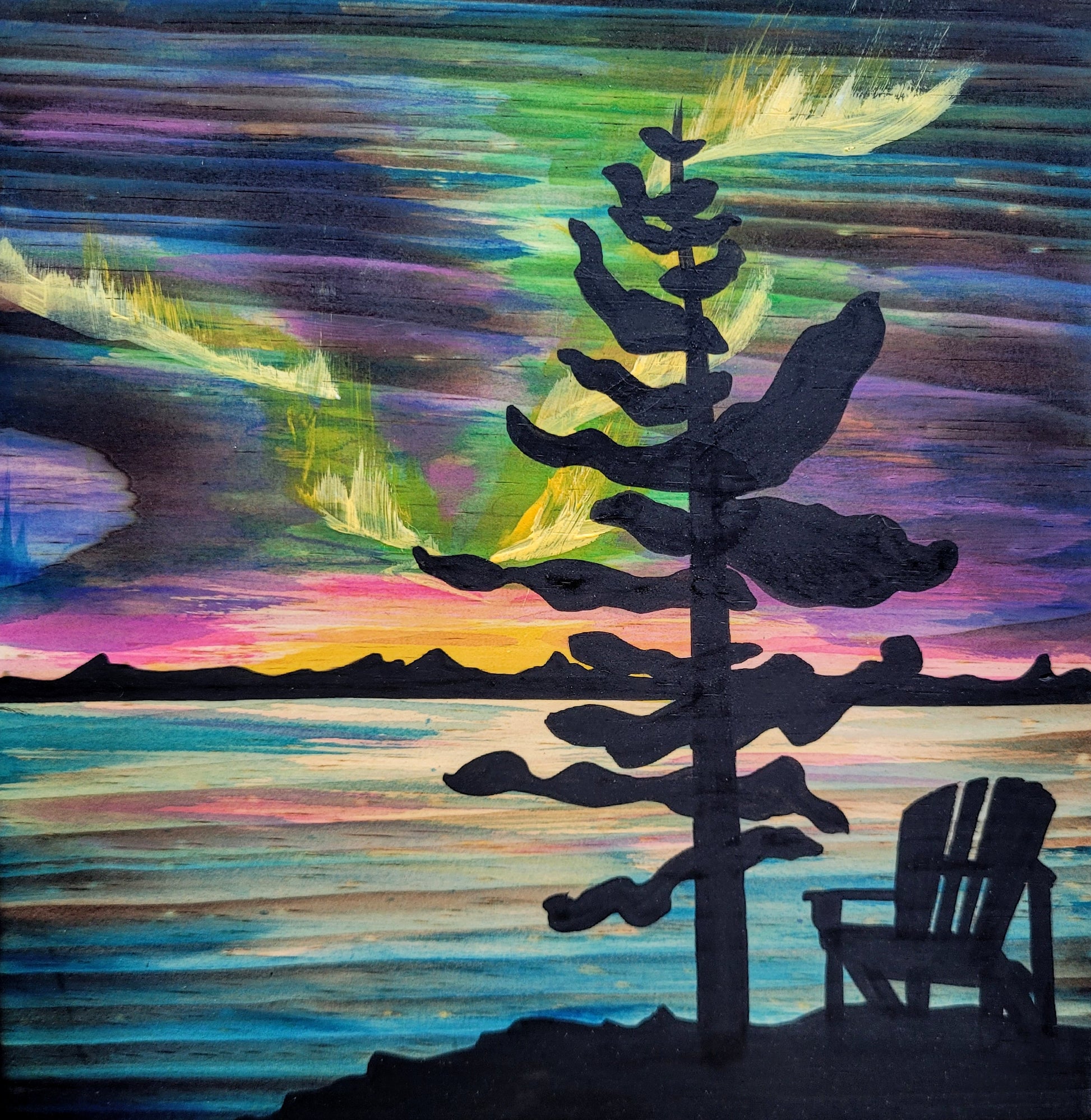 The colors described in the options are each original paintings available for sale, and you will receive the artwork that is pictured. Each painting in the series portrays the same overall image, however each is painted by hand so every piece is unique containing small differences in the details. I can also create a custom artwork with your choice of colours, don't be afraid to ask! (This can also include small adjustments to the design, such as the Muskoka chairs added to the blue sample artwork pictured. Please note that the Muskoka chairs will not be included in the painting unless you specifically request them.) The grain and knot patterns are different on each piece of wood, so your custom painting will look slightly different than those pictured. let me know if you have any specific requests and I will do my best to accommodate!